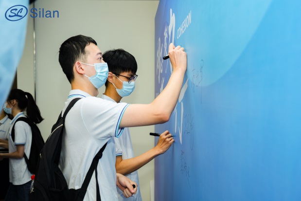 7月6日上午,陽光熱烈,士小蘭給每個(gè)同學(xué)準(zhǔn)備了貼心的入職禮,等待新同學(xué)的到來。同學(xué)們在簽名墻上留下自己帥氣的大名,完成新人專屬任務(wù)卡,心愿墻上留下自己對未來的期待。再給遠(yuǎn)方的家人朋友寄去一張士蘭明信片,告訴他們:我在士蘭很好。